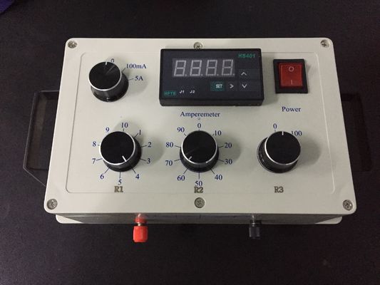 The lamp in the luminaire is replaced by the test circuit as shown in Figure C.3. The test is commenced with the test circuit, luminaire and control gear stabilised at the ambient temperature of the draught-proof enclosure. By varying the resistor R, the lamp current is adjusted to a value equal to twice the normal lamp current. No further adjustment of R is made.